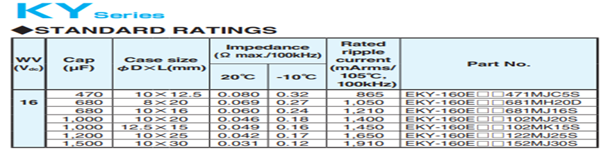 The lifetime of an active-clamp capacitor: KY capacitor lifetime 7kHr 105°C